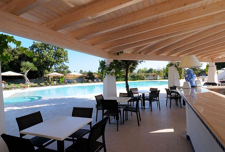 Poco distante dal ristorante si trova la piscina nonchè cuore della Masseria. Qui si può trovare riparo e frescura nelle giornate afose, sorseggiando un drink o semplicemente facendosi coccolare dal caldo sole pugliese.