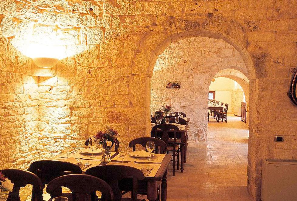 Immersa in 60 ettari di bosco di lecci e uliveti secolari della campagna della bianca e affascinante Martina Franca. Un tempo adibita a casa padronale e casa del massaro con adiacenti locali per l’allevamento del bestiame ed il deposito del foraggio, è oggi un incantevole masseria che dispone di un ristorante ricavato in un complesso di 7 trulli.